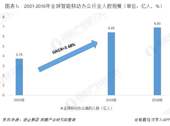 生活和工作的边界越来越模糊,更多人的生活重心开始围绕办公,因此如何让办公更愉快成为一个重要命题。德必集团发布的数据显示,在2001年的时候,全球的移动办公者的人数是3.75亿,到了2016年全球移动办公者的人数是6.45亿,复合增速为3.68%,按此增速前瞻测算2018年全球移动办公的人数接近7亿。