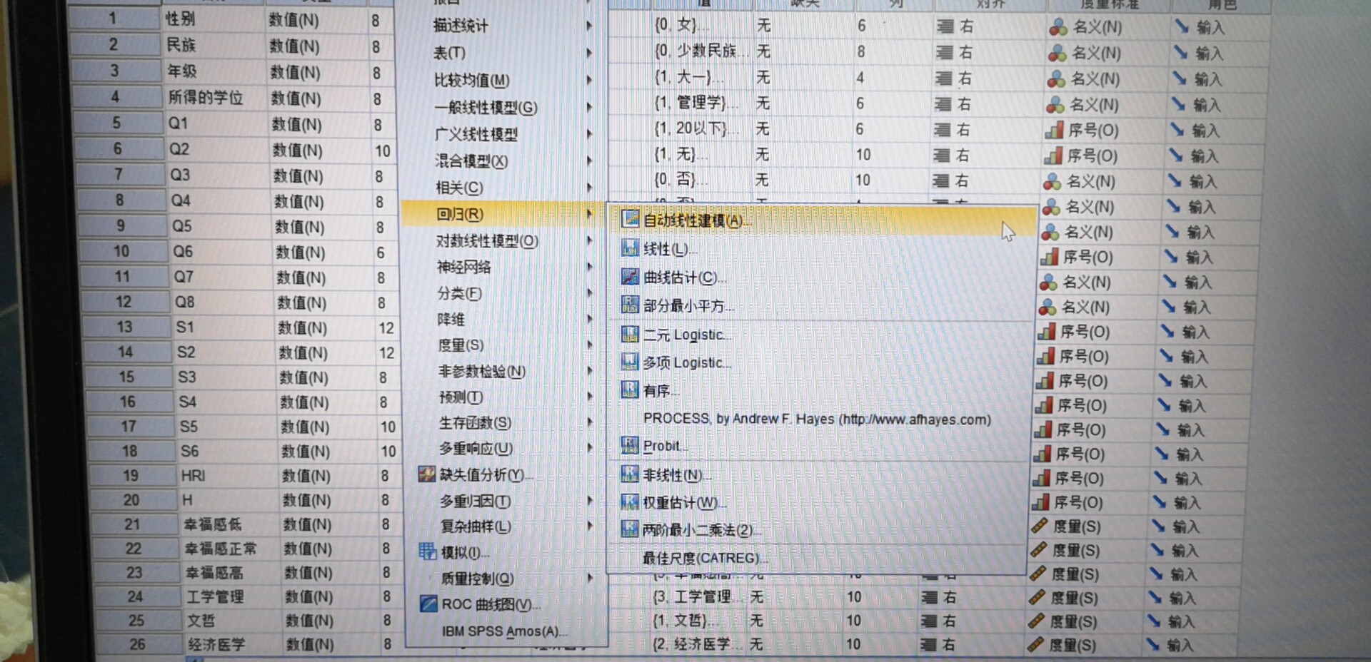 jin216 发表于 2019-9-19 11:13 spss版本不同,安装程序有些差别。在回归菜单中能显示出process 就说明安装成功。