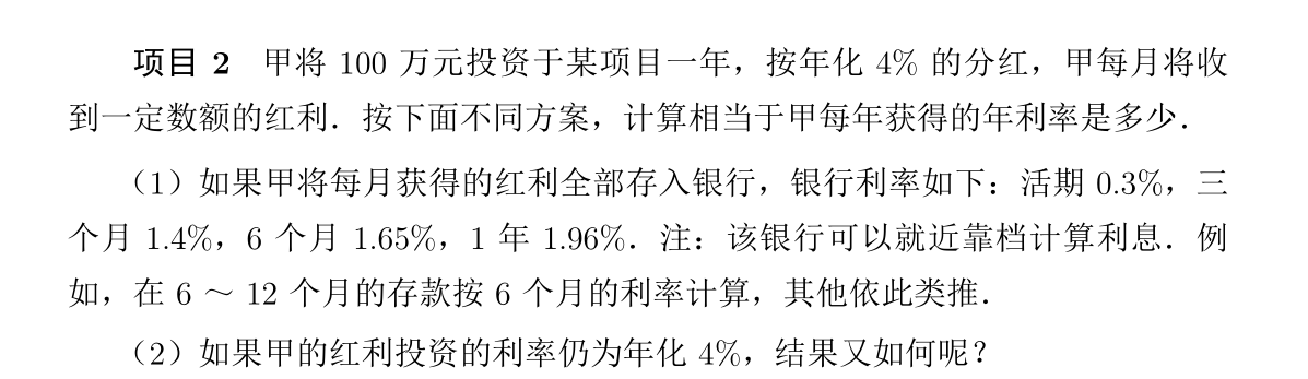 甲将 100 万元投资于某项目一年,按年化 4% 的分红,甲每月将收