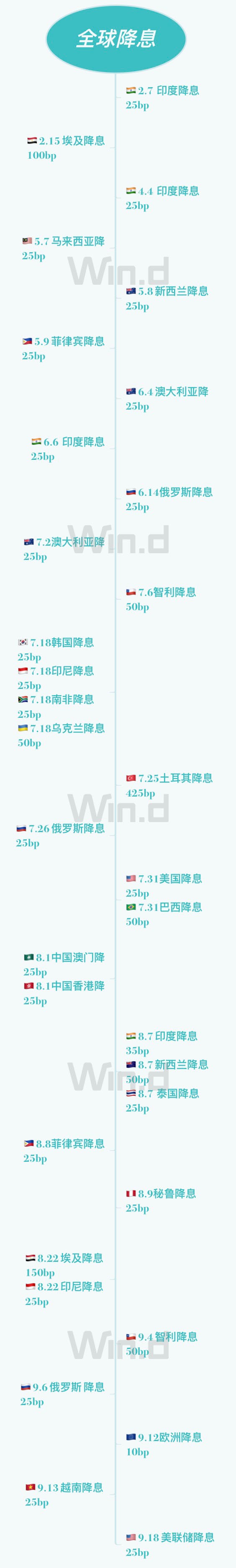 沙特央行将基准利率下调25个基点。约旦央行降息25个基点。阿联酋央行降息25个基点。巴西央行将基准利率下调50个基点。
