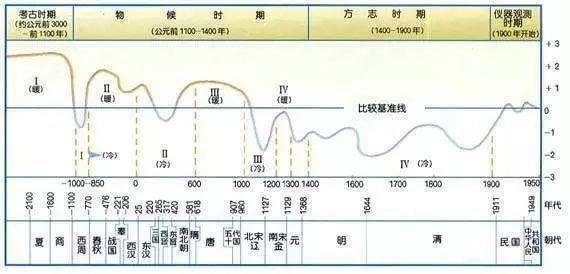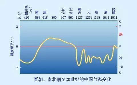 从这幅图里,可以看到近几千年来的气温变化是伴随着天朝的兴衰而变化的,气温升,国运升,国家强大,气温降,国运衰,国家弱小,这种现象的背后,其实是农业立国的具体表现,在生产力不发达的时代,以农业为主的国家只能靠天吃饭,在气候温暖湿润的时候,农业往往会获得极大的丰收,而极端低温的时候,粮食歉收,天灾人祸、饥荒连绵、衣不蔽体,往往会产生暴乱和起义,从而建立新的朝代。