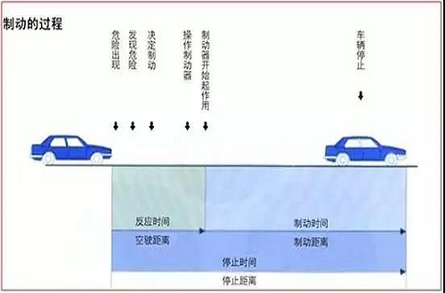 大脑从发现危险,到向脚发出信号,再到踩刹车,时间平均为1.5秒,此时车已经开出了40米,但车并不会立即停下,还有一个制动距离,就算是很好的车,也需要再来一个40米,整个“停止距离”就是80米。