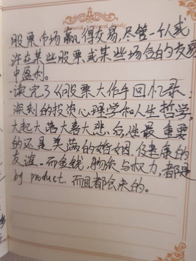读完了《股票大作手回忆录》,里面深刻的投资心理学和人生哲学。大起大落大喜大悲后,人生最重要的还是美满的婚姻,健康的友谊。而金钱,物质与权力,都是by product,而且都会来的。