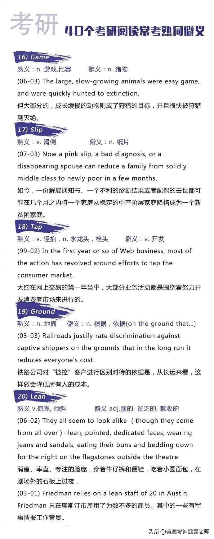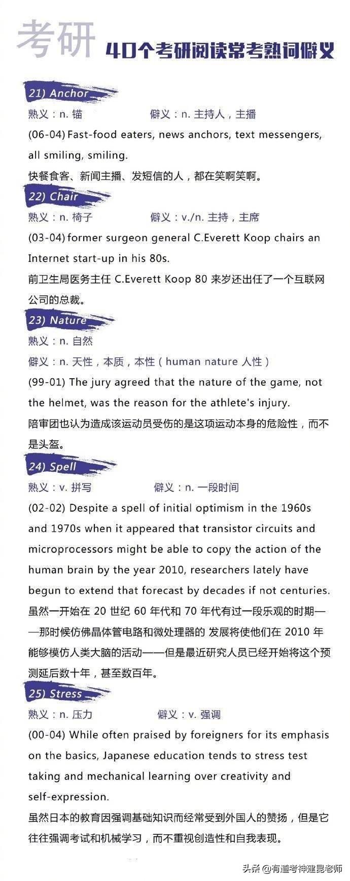 【学习笔记】考研阅读40个常考熟词僻义单词