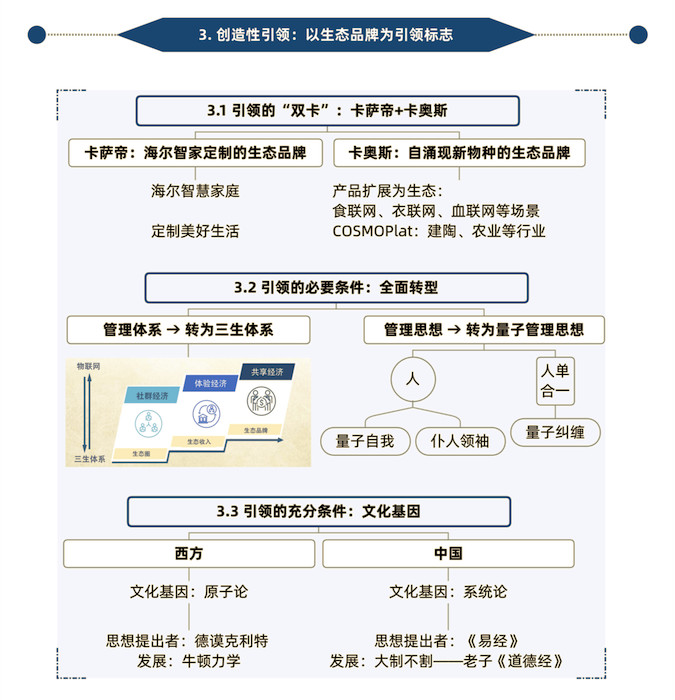 “链群合约生态图”是海尔向物联网转型的战略框架图,既是创造性破坏的指导,也是创造性重组和创造性引领的框架。我想从四个角度解析这张图:自组织、自驱动、自增值、自进化。