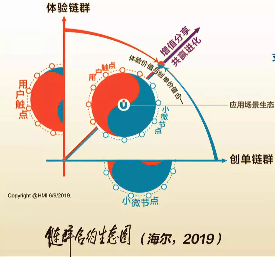 自驱动。“创单链群”和“体验链群”集中在一起,两边都是小微,没有领导怎么办?需要的是自驱动,自驱动靠的是用户的应用场景生态。我认为物联网或5G,最后落脚点就是场景。换句话说,如果没有场景,根本就不存在5G和物联网。为什么物联网长期叫好不叫座?因为没有场景,万物互联不是传感器互联,本质是“人联网”。