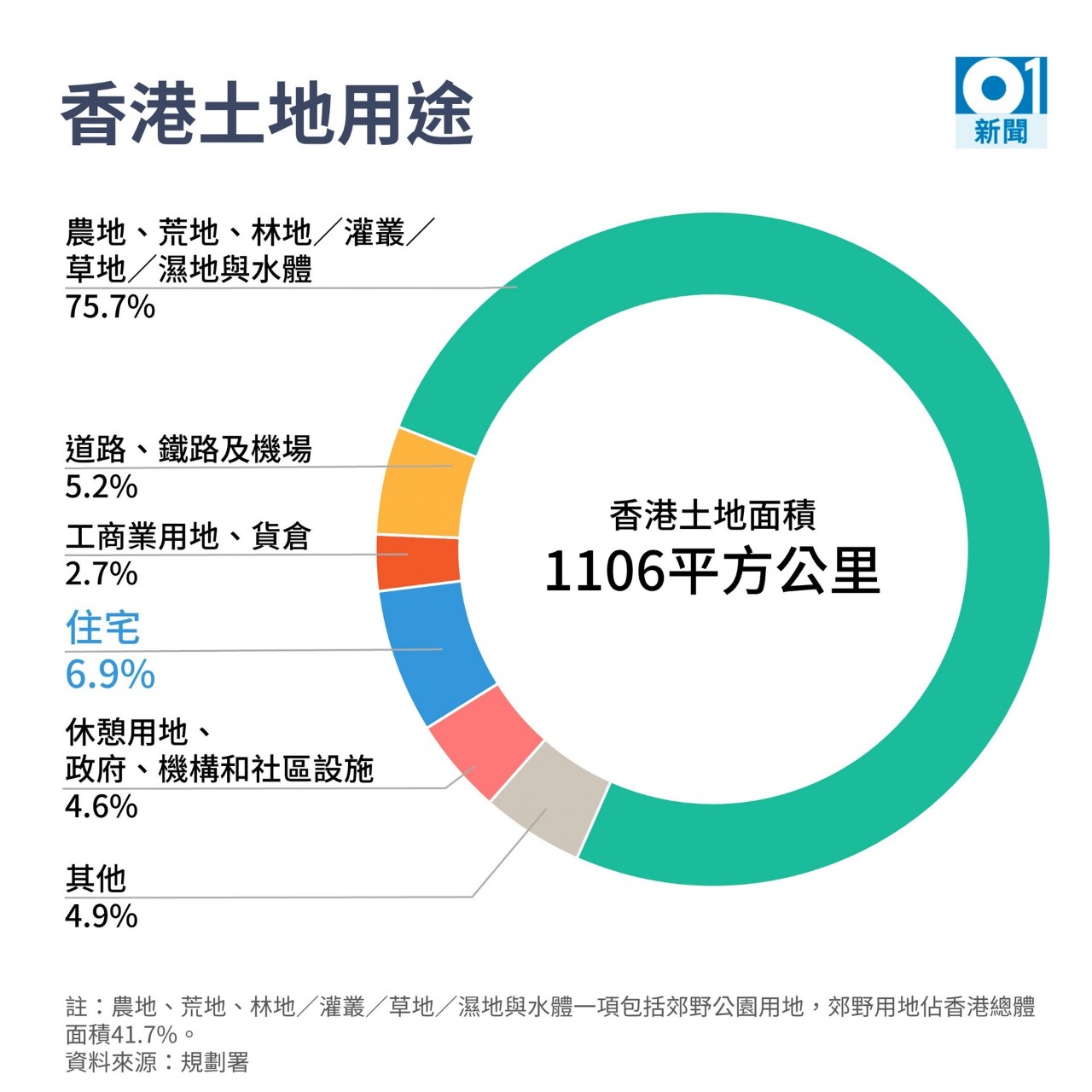 “人多地少”即使是在香港这个拥有700多万人口的弹丸之地也是一句谎言,香港土地的开发状况足以令人大吃一惊:在1106平方公里的土地上,只有6.9%面积被用来开发住宅,超过75%的面积为未开发的土地。
