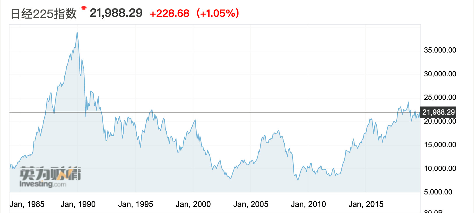 看看日本的股市更不得了,至今都没有达到1990年的高点。