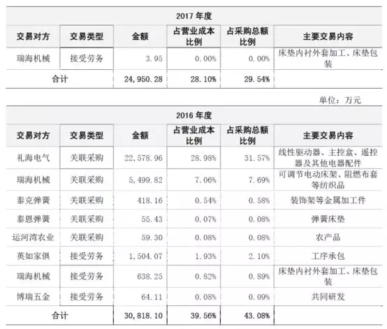 2015年度、2016年度及2017年度,公司向礼海电气采购商品金额分别为10,604.23万元、22,578.96万元及23,100.19万元。