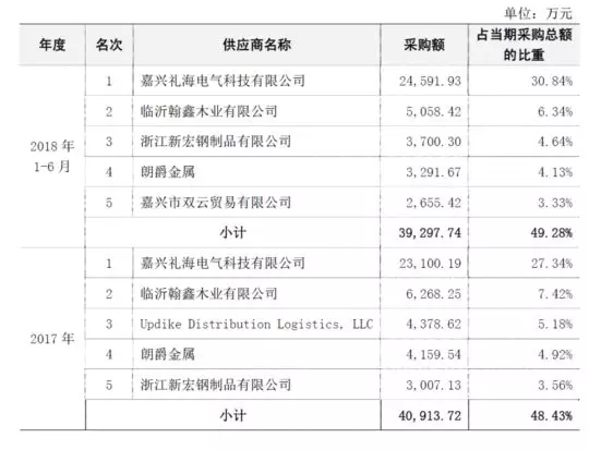 1、礼海电气一直是发行人第一大供应商,占比在30%左右