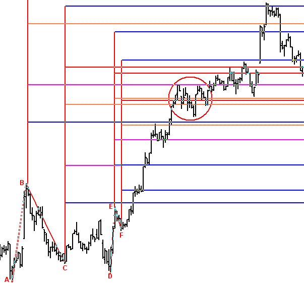 This is a very valuable technique that you should incorporate into your trading. It's primarily meant for setting profit-objectives, and it's used after you are in a trade not as part of the decision process for entering a trade. In my opinion this issue of profit-objectives is the least understood component in the trading-process. It's often glossed over with the cliché "You can't go broke taking a profit". Hopefully this technique will assist you in your profit-taking strategy. But additionally, many of us have noticed that this method can be avery valuable addition to our trade-entry setups. If you have a trend-change in effect (detailed later in this course) and price has reached a profit-objective, the effectiveness of the trend-change is enhanced many-fold.