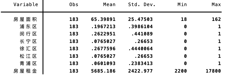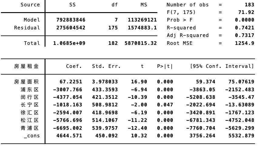 被解释变量是房屋月租,解释变量是房屋所处区位和房屋面积。
