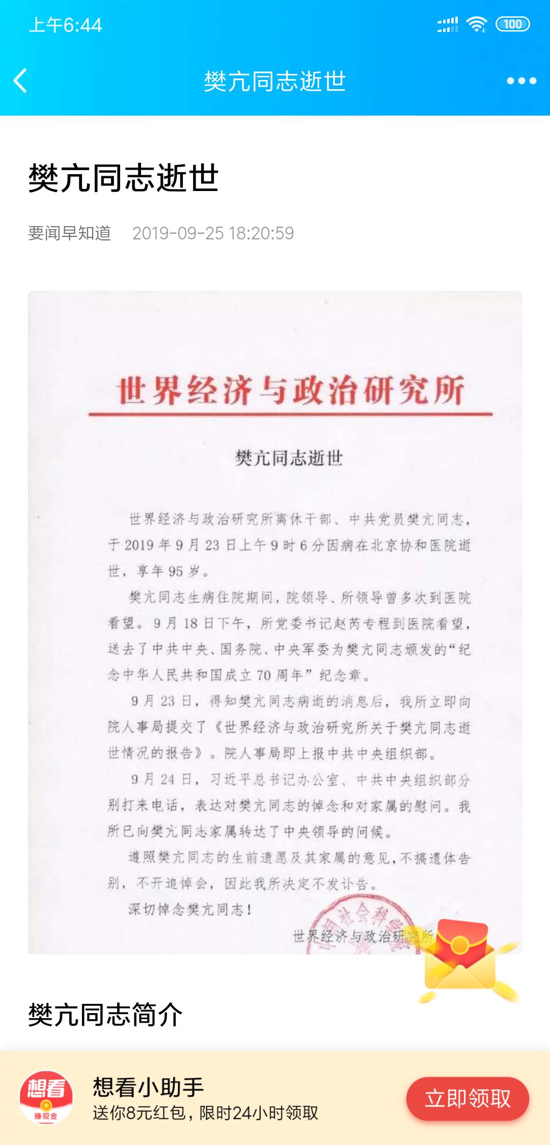 今天早上收到的消息,我不知道樊亢先生在经济学领域有多厉害,网上搜到的信息简单又深厚,我的辅导员老师说知道她,“读