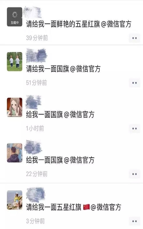 昨日,朋友圈被“请给我一面国旗@微信官方”刷屏了,只要在朋友圈@微信官方要国旗,头像就会挂上国旗。