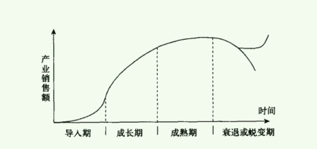 蜕变期是指在行业衰退期间,行业经过技术变革,在原来行业的基础上有了提升,适应了市场环境变化,能满足新的市场需求。本阶段的某些特点与行业的导入期有些类似,即有新材料、新技术或新的服务形式的出现,从而满足新的市场需要,但区别是蜕变是在已有行业的基础上进行提升,而导入期是进入一个全新的领域。