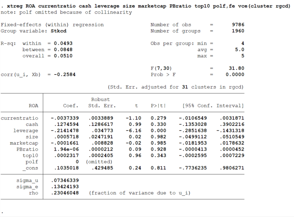 stata 固定效应分析