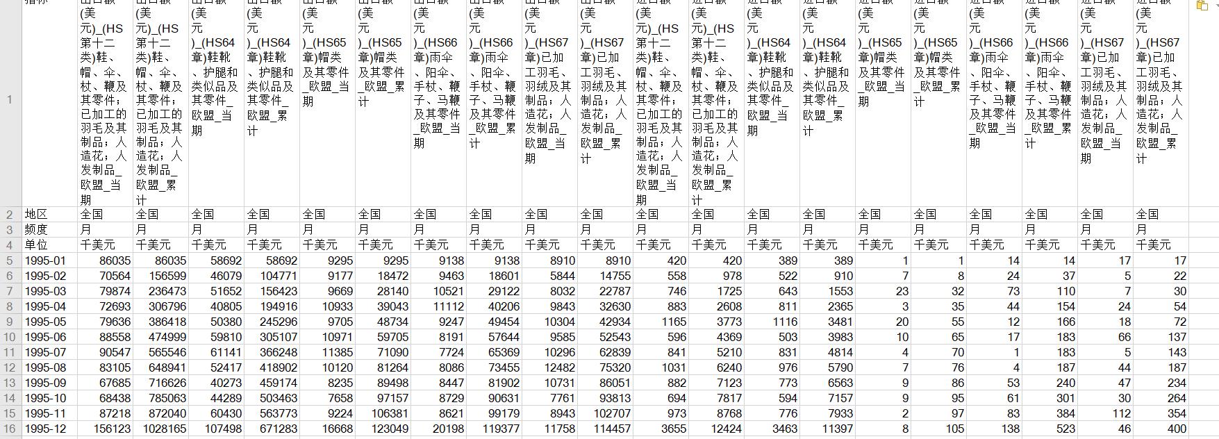 这个是中国对欧盟的进出口月度数据,时间为1995年1月-2019年8月,HS分类,总共为二十二大类,98章,具体分类 ...