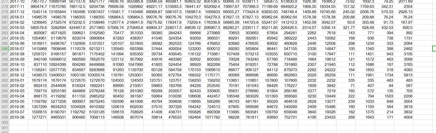 这个是中国对欧盟的进出口月度数据,时间为1995年1月-2019年8月,HS分类,总共为二十二大类,98章,具体分类可以查看百度HS的分类方式。数据来源于海关总署,金额单位为千美元,每一章都分进口值和出口值,进口值和出口值均分为当期值和累计值,当期值为该月中国对欧盟的进出口值,累计值为当年至该月中国对欧盟累计的进出口值,其中12月的累计值可以作为该年中国对欧盟的年度进出口值,可以很容易地将月度数据转换成季度数据和年度数据,极大地方便了我们的研究,有兴趣的朋友们可以下载来做研究之用,但请勿将其直接上传到各类论坛,公共群之中去,谢谢。附件请下载: