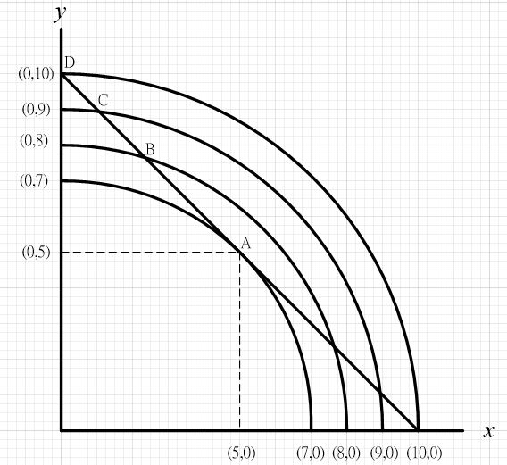 凹偏好的无差异曲线是凹向原点的。呈现边际替代率递增。