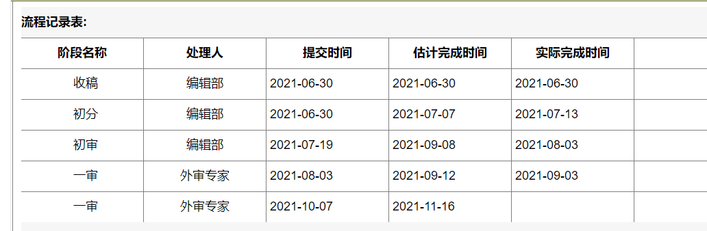 我想问问,底下的一审流程图显示绿色,但是时间表里一审还没结束。。稿件状态也无了,是什么情况