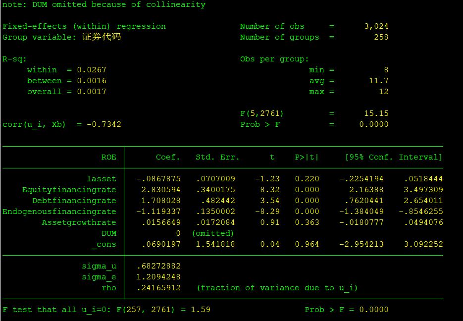10628903 发表于 2019-10-7 21:34 我用的是stata,固定效应的结果如下: 随机效应显示的结果如下: 这两种结果不一样,是啥原因,该如何解释 ...