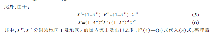 DtHyy 发表于 2019-10-10 11:31 公式(5),总产出等于列昂惕夫逆矩阵乘以最终使用,而最终使用分为本地使用(地区内),国内流出(地区间) ...