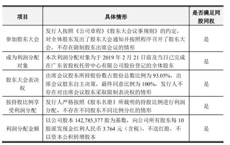 发行人本次利润分配不存在违反同股同权的原则的情形,在股东大会参会及表决、分配对象确定、分配比例方式等方面均按照“同股同权”的原则。
