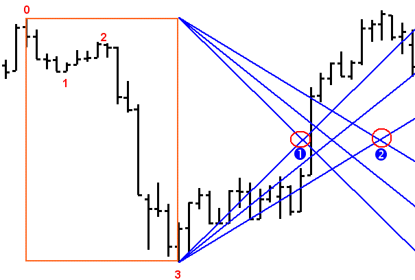 4. the projected fan-lines appear to provide rising or falling short-term support and resistance