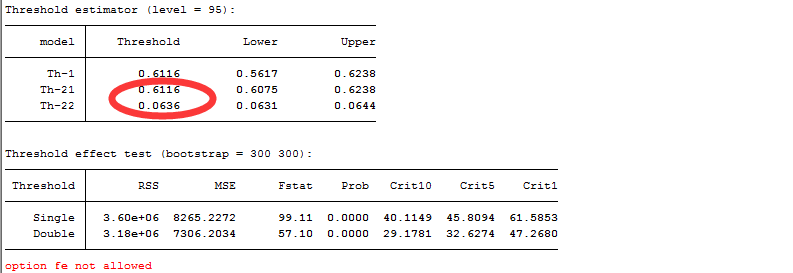 双重门槛出现第二个门槛值小于第一个门槛值 ??? 求指教?