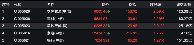 Wind数据显示,截至昨日收盘,中信一级行业中,房地产指数涨幅2.01%,在所有行业中居前。