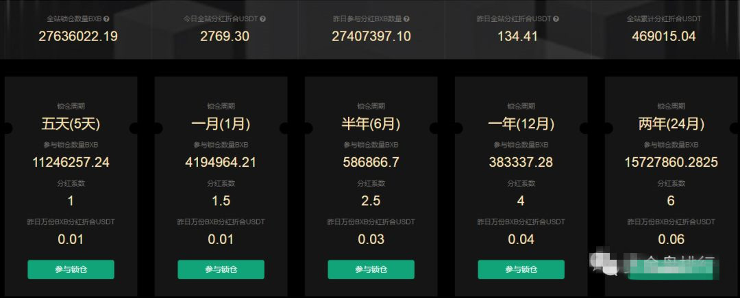 币兴交易所搞得锁仓分红搞了5个期限,5天、一个月、半年、一年、两年。根据币兴交易所公布数据来看,锁仓2年的用户占到60%,也就是说60%的用户选择锁仓2年,其中有多少水分只有交易所知道。