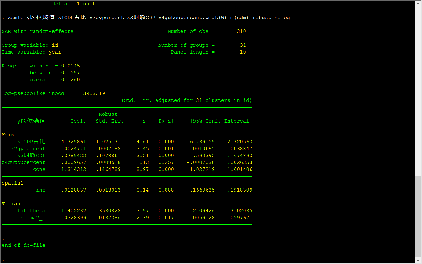 xsmle 命令不报告直接效应和间接效应