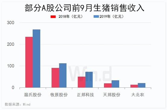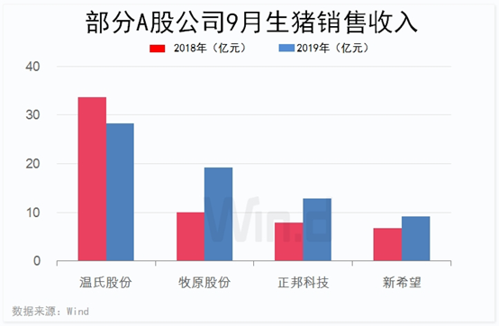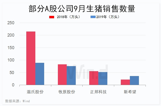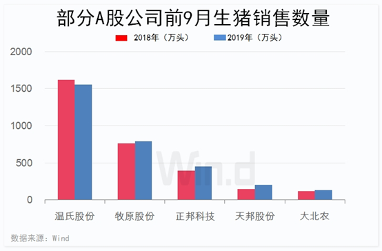 Wind统计显示,今年前三季度,上述7家公司累计销售生猪3423.06万头。