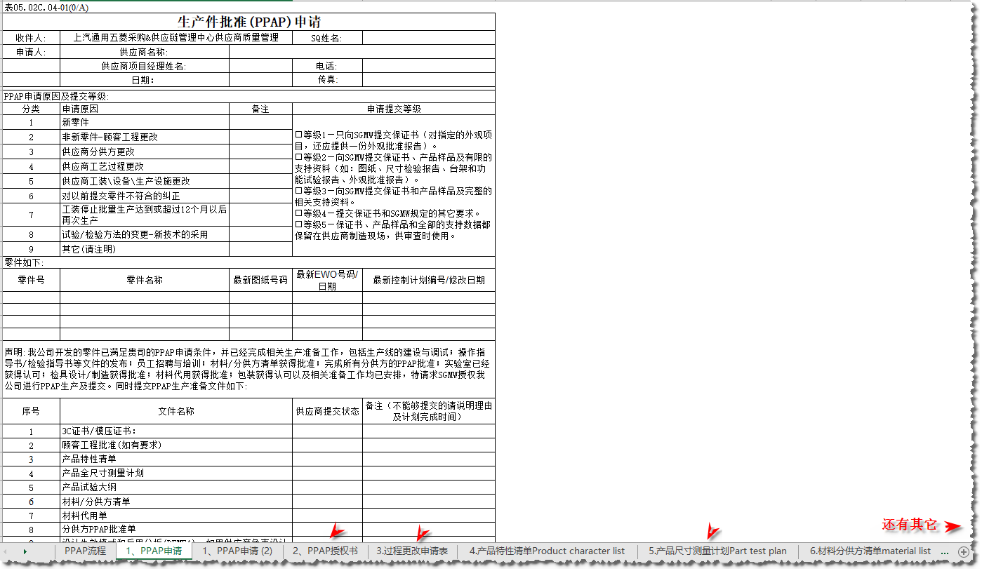 4> 全面的PPAP流程+全套PPAP早报时所需提交的表格文件.xls