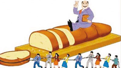 从上面的图可以看出:老板占有几块蛋糕,而很多工人只能分享一块蛋糕。这就是事实,老板与工人的收入为什么相差那么大?我来回答。其实,这和“千古未解之谜——为什么贫富差距不可扼止?”是一个问题。