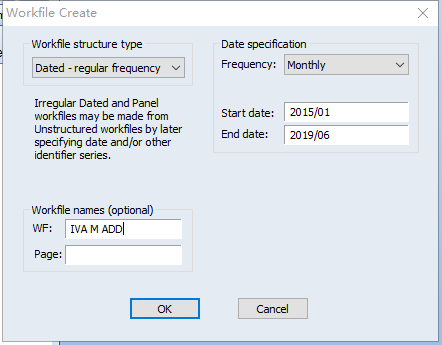 再建立一个workfile,建立同区间的月度数据。