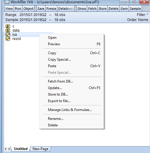 首先建立新的workfile,建立季度数据,导入数据。
