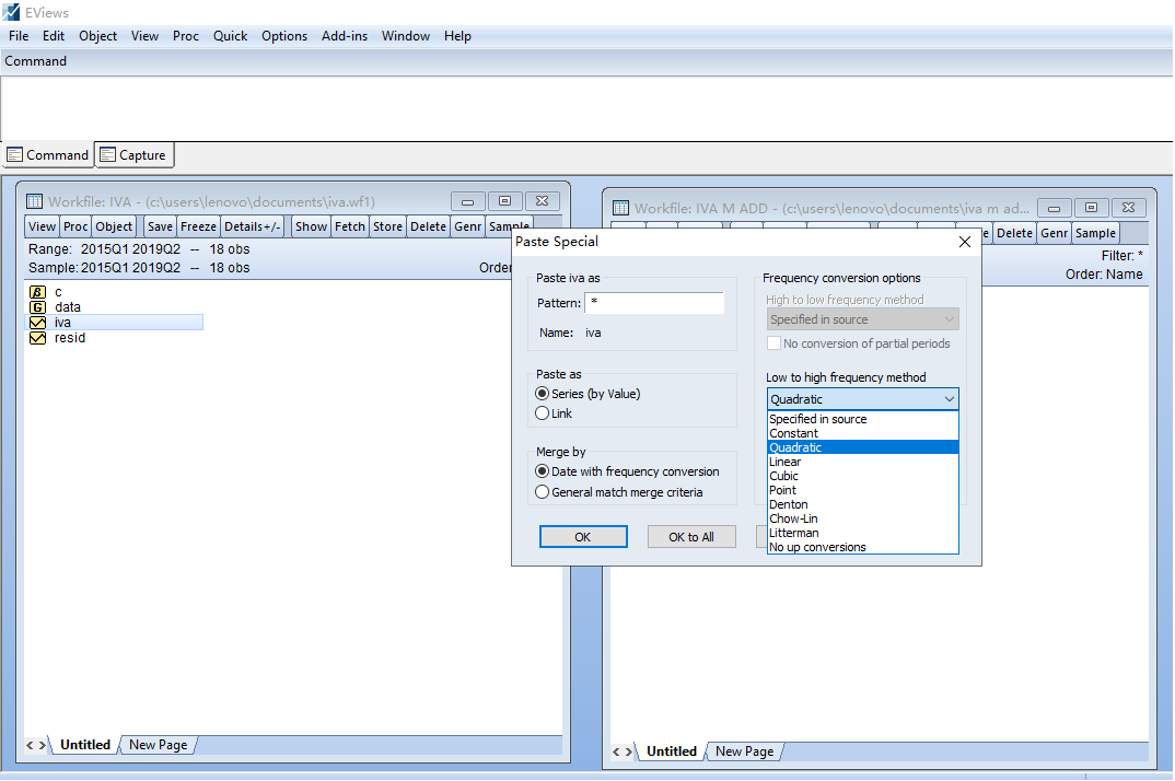 季度数据转化成月度数据 EVIEWS 9