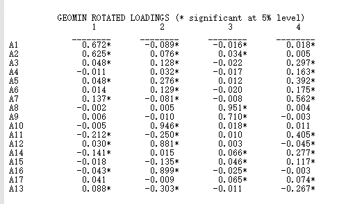 想用探索性因子分析简化条目,我确定了15个条目输进去分为4个factor最佳,但是求教如何根据因子负荷看哪几个条目属于哪一个factor?