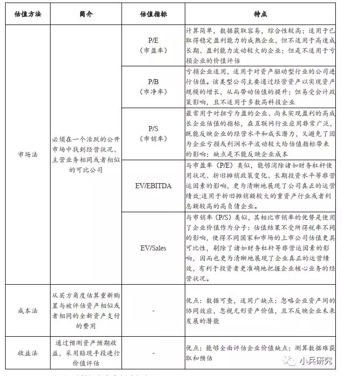 目前常见评估方法主要有三种:收益法、市场法、成本法(资产基础法)。