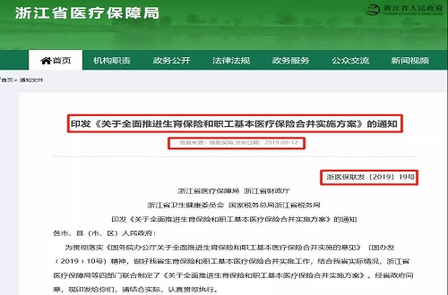 9月12日,浙江省医保局发布《关于全面推进生育保险和职工基本医疗保险合并实施方案》的通知,明确两险合并的具体实施方案。