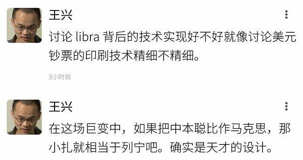 在Libra发布的6月份,王兴还曾发表了对Libra的思考和分析,赞誉Libra是天才设计。