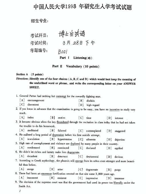 目前最全面的中国人民大学考博英语真题,包括1998-2010年真题和答案,文件为图片格式,字迹清晰。