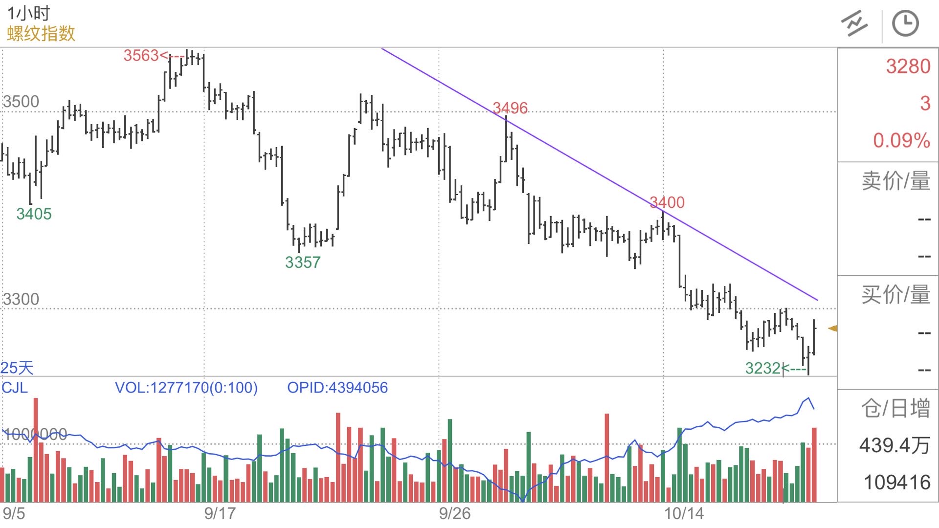 小时周期并未突破下降趋势线。