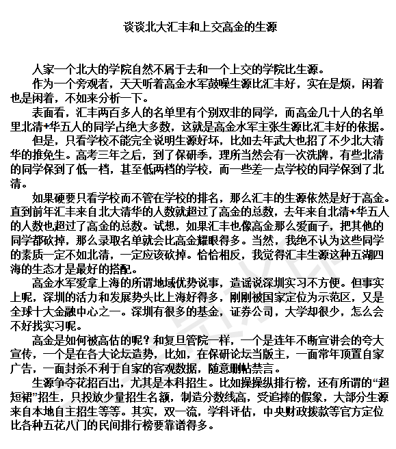 谈谈北大汇丰和上交高金的生源