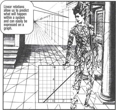 In linear systems, variables are simply and directly related. Mathematically, alinear relationship can be expressed as a simple equation where the variablesinvolved appear only to the power of one: