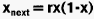 , where x represents the present population of fish in an area. When the parameter, r (rate of growth) was 2.7,he found the population to be .6292.