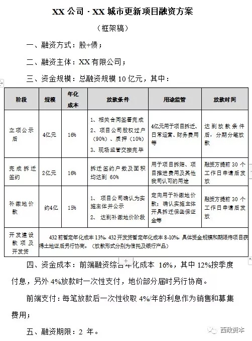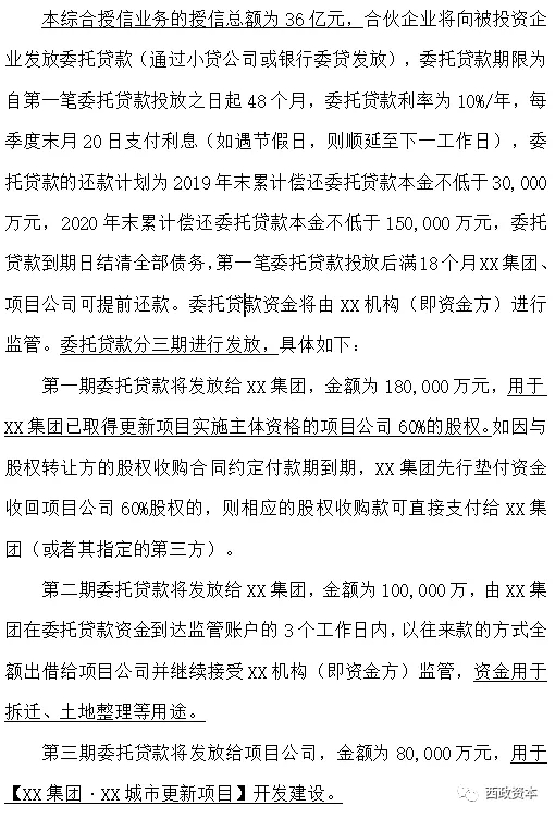 私募机构以及其他金控平台提供的城市更新项目并购贷款在操作上比较简单,要么是明股实债,要么是直接借款,在此不再赘述。