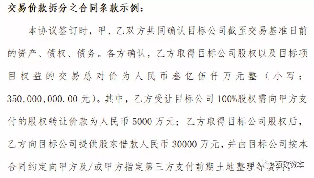 在深圳城市更新如火如荼的前10年里,深圳的市面上存在大量以“圈地”为主业的公司,这些前期公司的实际控制人一般都是前期与业主方签订了拆赔协议,通过了专项规划的审批后直接转让项目公司的股权,有的甚至会坚持到取得实施主体资格后再转让项目公司股权。这些前期公司因大部分费用均无法入账,因此账面净资产很低(历史成本很少),加上这些公司的注册资本及实收资本一般都不太高,因此因直接转让项目公司股权所产生的股本溢价及所得税非常之高。在这种市场背景下开始慢慢催生以拆分交易价款为核心的“股加债”交易方案,具体就是新股东以平价或低价受让项目公司股权后大额注入股东借款,随后项目公司以土地整理费用等名义间接将交易价款支付给转让方或其关联方。