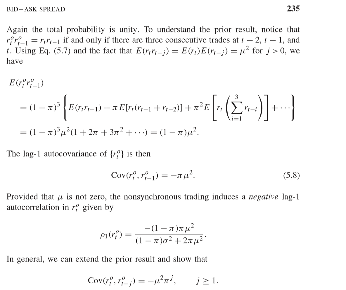 chifuhuang 发表于 2019-10-23 15:02 tsay的微观结构那章非同步交易的推导啊,你列的这页这之前几页有铺垫的,把j取2,3试一试就清楚了。
